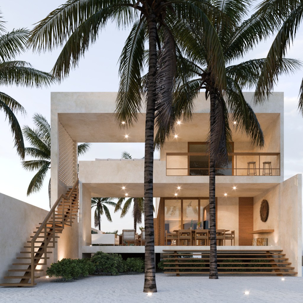 La presencia de terrazas, balcones y elementos abiertos enmarca la vida exterior como parte esencial del proyecto, logrando una casa versátil, cómoda y profundamente vinculada a su contexto de playa.