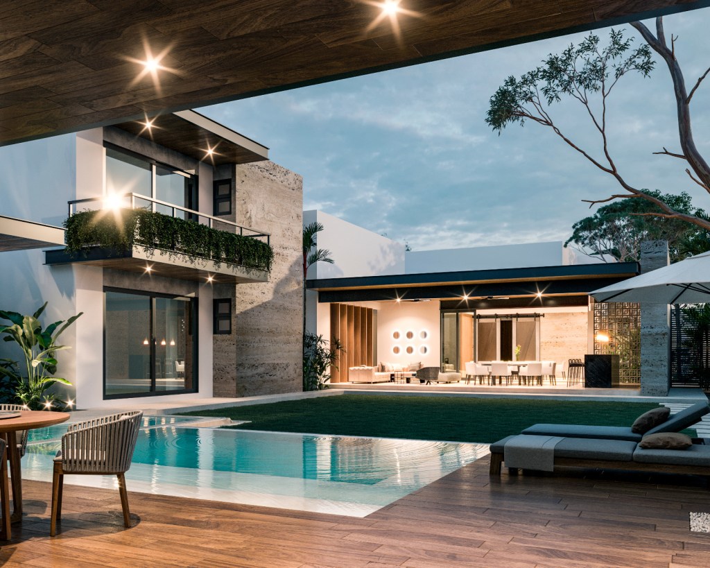Proyecto residencial diseñado para una familia, concebido como una experiencia espacial donde la arquitectura y el paisaje se entrelazan de manera continua.