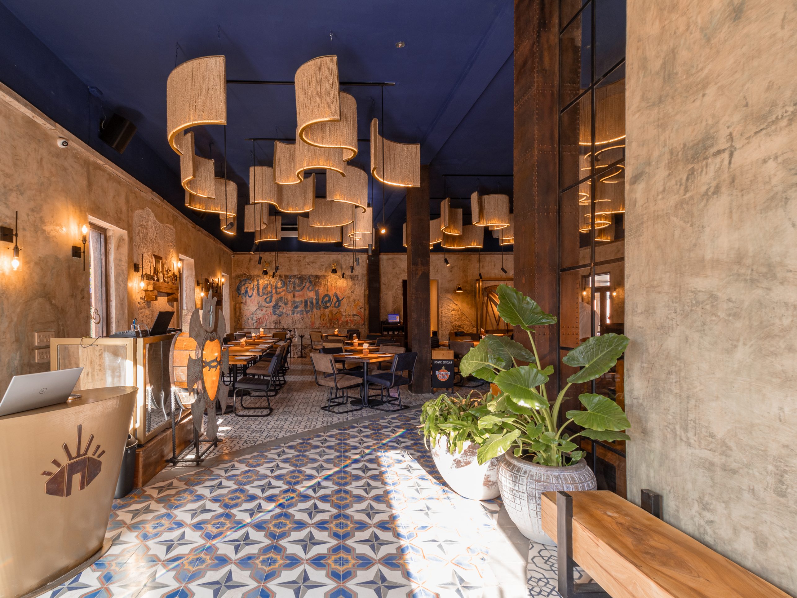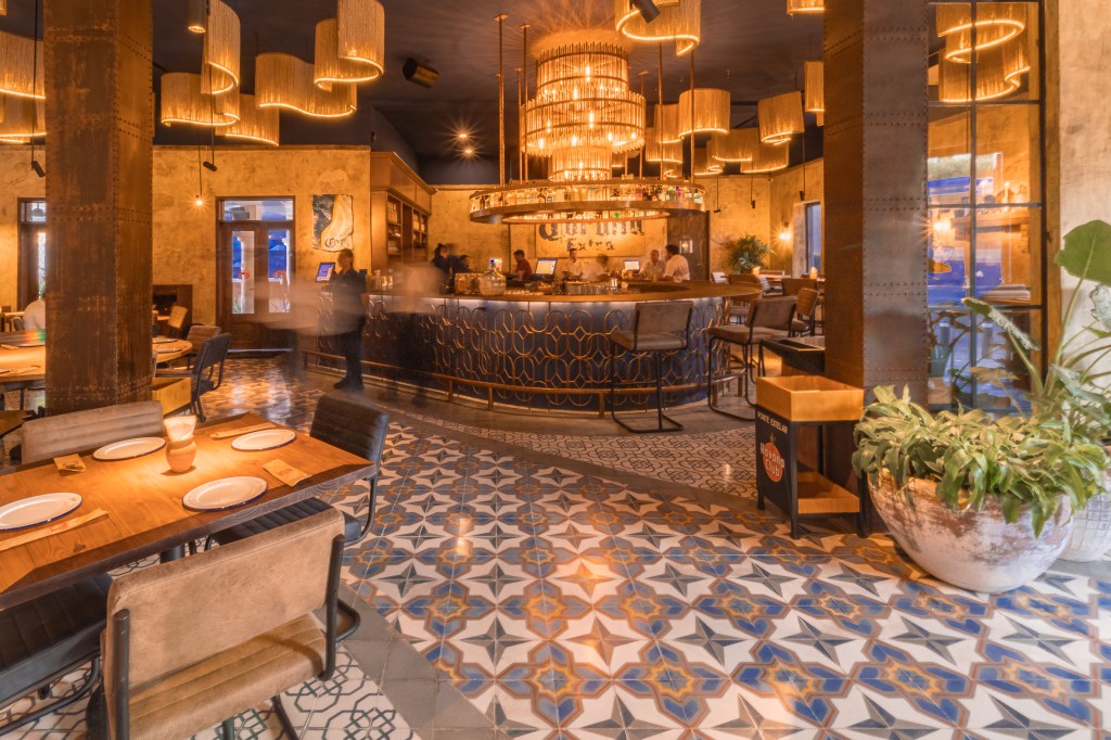 Destacan piezas como las luminarias suspendidas en el plafón, que aportan carácter y dinamismo, así como la combinación de pavimentos que delimitan y guían las distintas áreas. La propuesta se complementa con una cuidada curaduría de arte, incorporando obra del artista Alfredo Romero de la colección Vestigios de nuestros tiempos, consolidando un espacio vibrante, sofisticado y con una identidad profundamente arraigada.